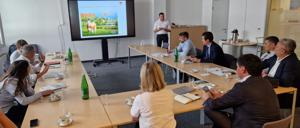 Kürzlich besuchte eine hochrangige Delegation von Verantwortungsträgern des Milchverbandes QAZAQSut und der Agraruniversität Zhangir Khan Österreich. Ziel des Besuchs war der Ausbau eines Wissens- und Technologietransfers mit der Rinderzucht Austria und insbesondere mit Fleckvieh Austria.