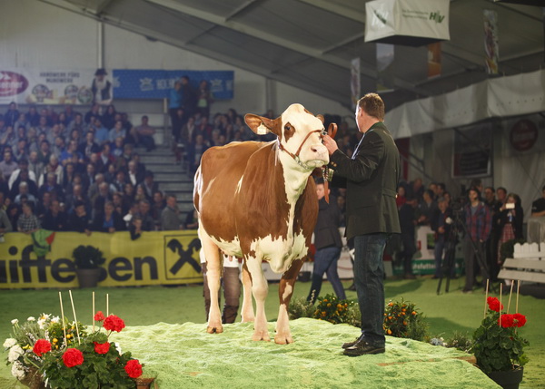 Insgesamt standen 14 weibliche Tiere zum Verkauf, darunter 11 genomische Jungrinder mit einem durchschnittlichen Gesamtzuchtwert von 141 Punkten. Ergänzt wurde dieses Angebot durch drei leistungsstarke Jungkühe aus dem Schaukontingent der Bundesfleckviehschau.