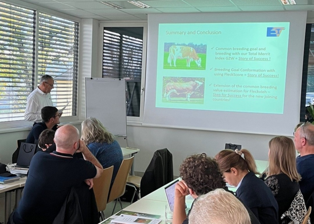 Im Oktober 2025 trafen sich die Ländervertreter der Arbeitsgruppe Exterieur der Europäischen Vereinigung der Fleckviehzüchter (EVF) in Österreich. Austragungsort des diesjährigen Treffens waren die Räumlichkeiten der GENOSTAR Rinderbesamung in Gleisdorf in der Steiermark.