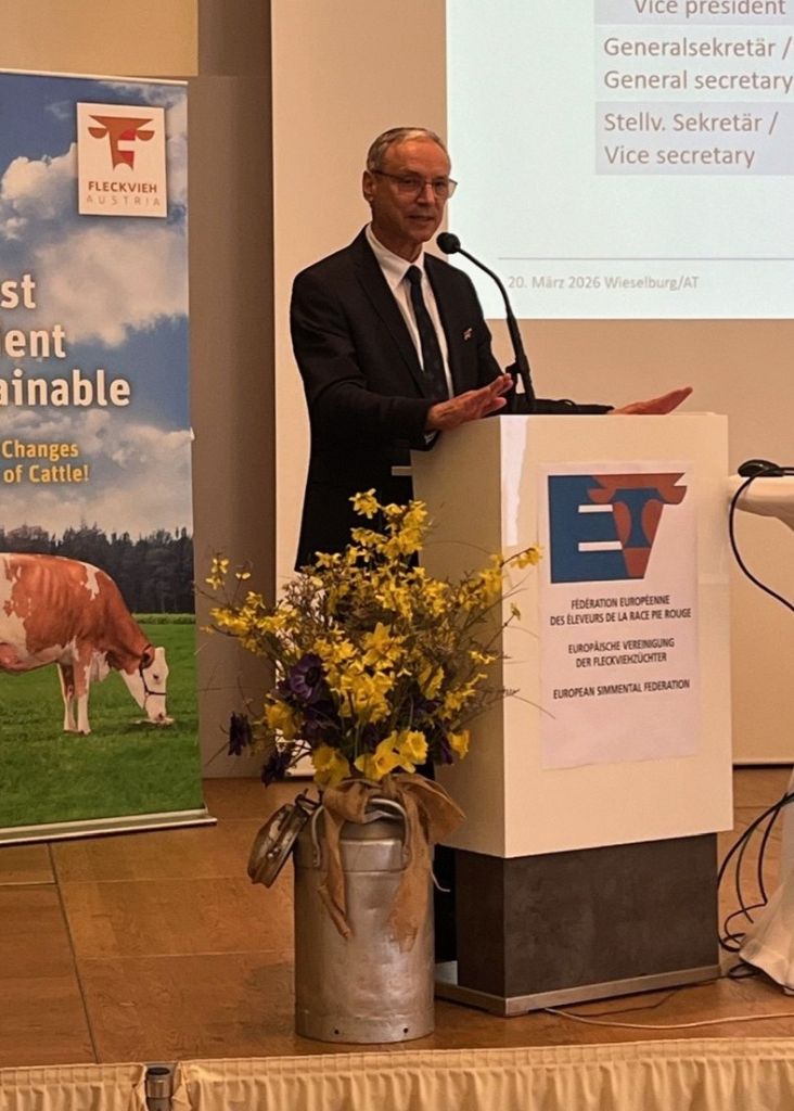 Fleckvieh Austria bedankt sich bei Präsident Sebastian Auernig für seine engagierte und umsichtige Führung der europäischen Vereinigung der Fleckviehzüchter sowie für seinen wesentlichen Beitrag zur Stärkung der Zusammenarbeit der Mitgliedsländer und zur Weiterentwicklung der Fleckviehzucht auf europäischer Ebene. Unsere Gratulation und unser Angebot der bestmöglichen Unterstützung ihrer Arbeit geht an den neu gewählten Präsidenten Dr. Daniele Vicario (Italien) und seinen Generalsekretär Thomas Pfaller (Deutschland).