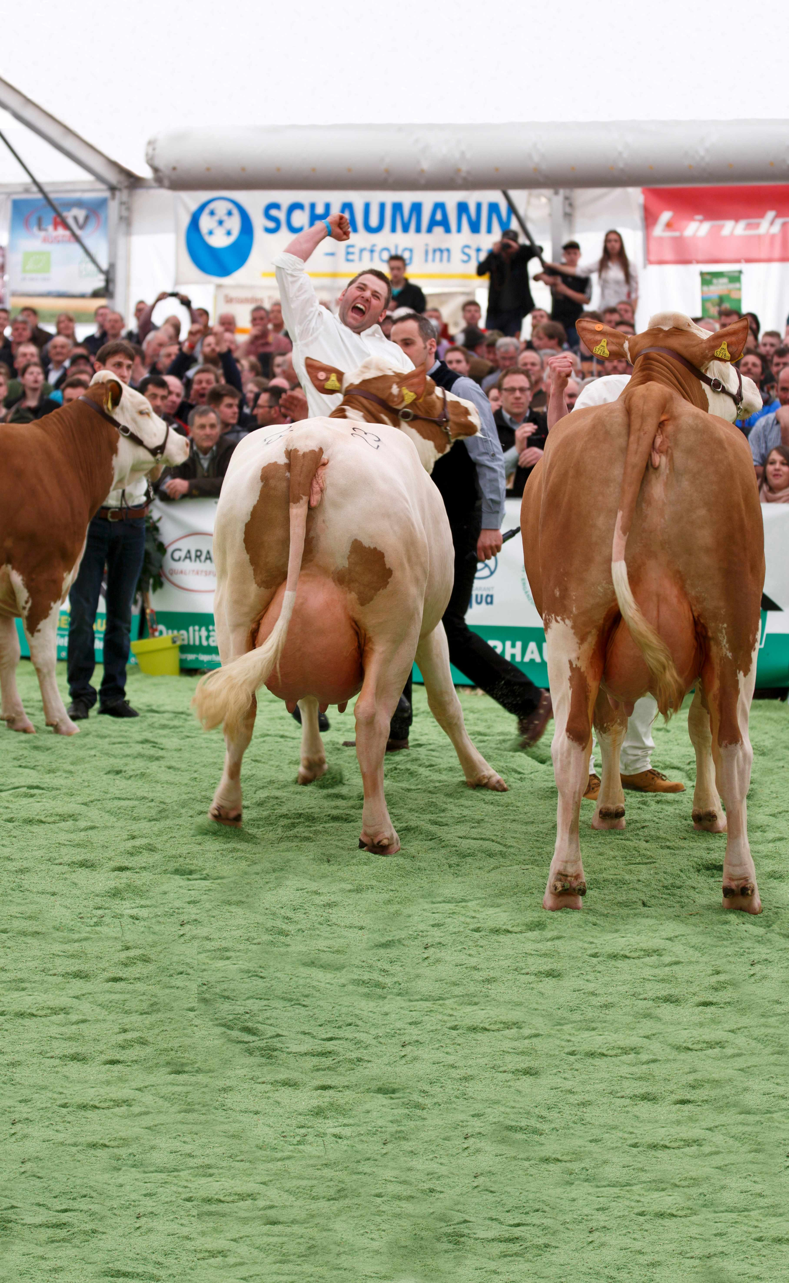 Dort angekommen, wurde ich von einem speziellen Betreuungsteam perfekt gestylt und gefittet und auch ich gab mein Bestes, zeigte etwas mehr Bein und B… als üblich und tatsächlich – ich wurde zum schönsten Jungstar der Fleckviehzucht in Österreich gekürt. Das ist eine bleibende Erinnerung für mich und meine Familie.