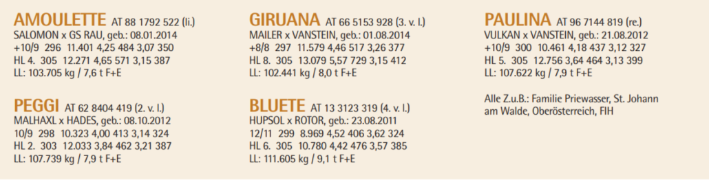 AMOULETTE, PEGGI, GIRUANA, BLUETE, PAULINA, Priewasser, St. Johann
