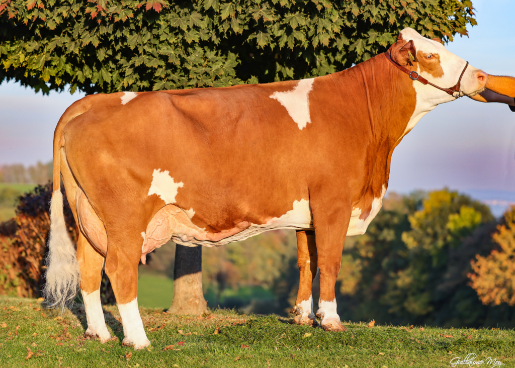 GS METRIS Pp* bringt Nachkommen mit mittlerer Kapazität und ausreichender Rumpftiefe. Die Fundamente zeigen eine Tendenz zu steileren Sprunggelenken, die trocken ausgeprägt sind. Im Euterbereich liegt seine besondere Stärke: straffe Voreutereinbindung, hoher Euterboden, korrekte Verteilung der Voreuter- und Schenkeleuterlänge sowie längere und dickere Striche bei korrekter Strichplatzierung.