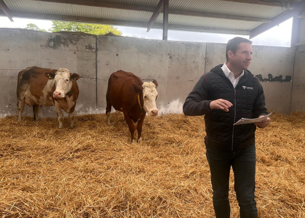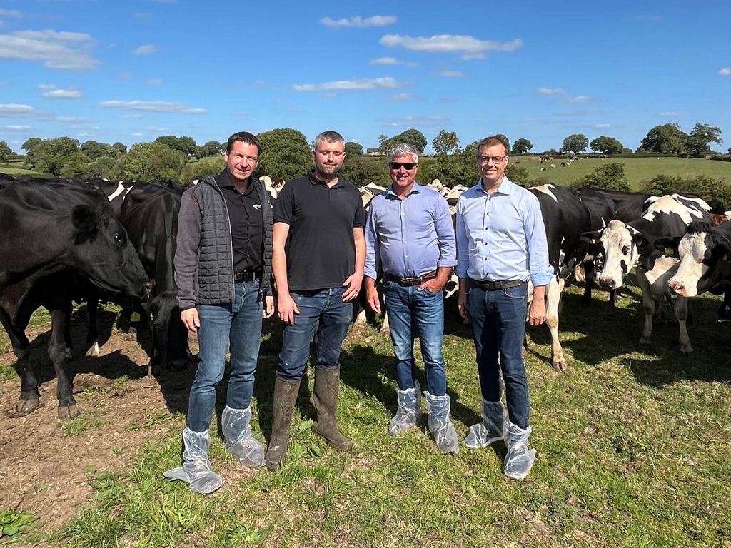 Die Reise nach Irland wurde auch für einen weiteren Besuch eines langjährigen Kunden der geneticAUSTRIA in England genutzt. Asher Seddon bewirtschaftet mit seiner Familie einen rund 70 Hektar großen Betrieb in der Grafschaft Derbyshire im Osten von England. Die Herde umfasst rund 300 Kühe und hat ein Produktionsniveau von 8.000 Kilogramm Milch. Die Fütterung basiert auf Maissilage, die zu 100 Prozent zugekauft wird, und Nebenprodukten der Lebensmittelindustrie sowie Weidegang. Vor einigen Jahren begann Asher seine Holsteins in einem Crossbreeding-Programm mit österreichische Fleckvieh-Stieren zu besamen. Sein Ziel war es, mehr Körperstärke, Substanz und bessere Milchinhaltsstoffe in seine Herde zu implementieren. Dass diese Strategie zu einigen beeindruckenden Kühen führte, konnte anhand der Herde bestätigt werden. Im Kälberstall stehen aktuell 15 neugeborene Kälber von MONORON.