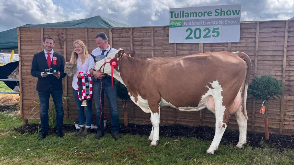 Champion Fleckvieh auf der Tullamore Show 2025: ELLI (V: Wrangler Pp), Züchter: Hubert Kapp, RSTM, Besitzer: Peter Cooke