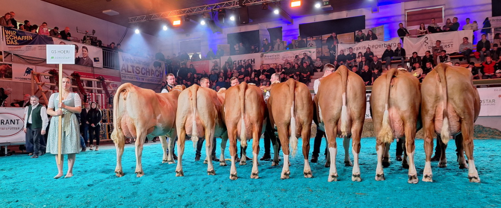 In dieser Kuh-Gruppe, die sich trotz fünf Abkalbungen in bester Jugendlichkeit präsentierte, holte sich die WORLDCUP-Tochter BERLE vom Betrieb Kendler Martina und Christian aus Hofstetten-Grünau mit ihrer Korrektheit im Euter und im Fundament den ersten Platz und Eutersieg. Der Reserve-Sieg ging an die ausgeglichene DELL-Tochter ZELDA vom Betrieb Steiner Christian, Alland, mit ihren Vorzügen in der Strichplatzierung.